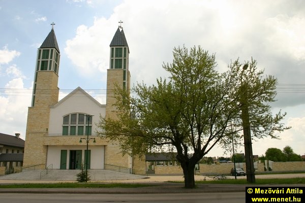 régi templom utódaként 2001-ben felszentelt modern, kéttornyú