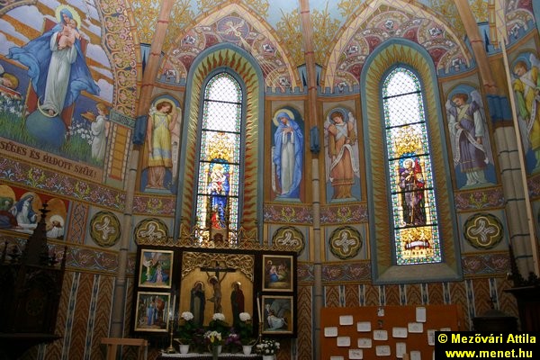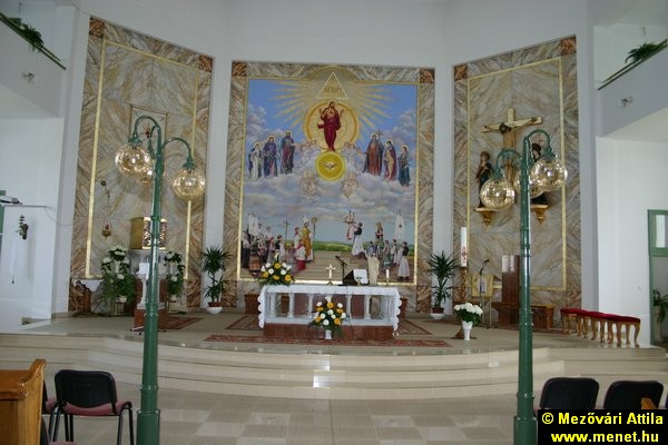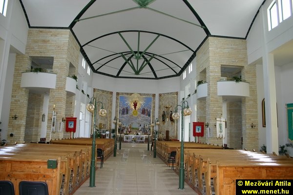 katolikus templom. Híres a Jézus szíve búcsú, matyóba öltözött